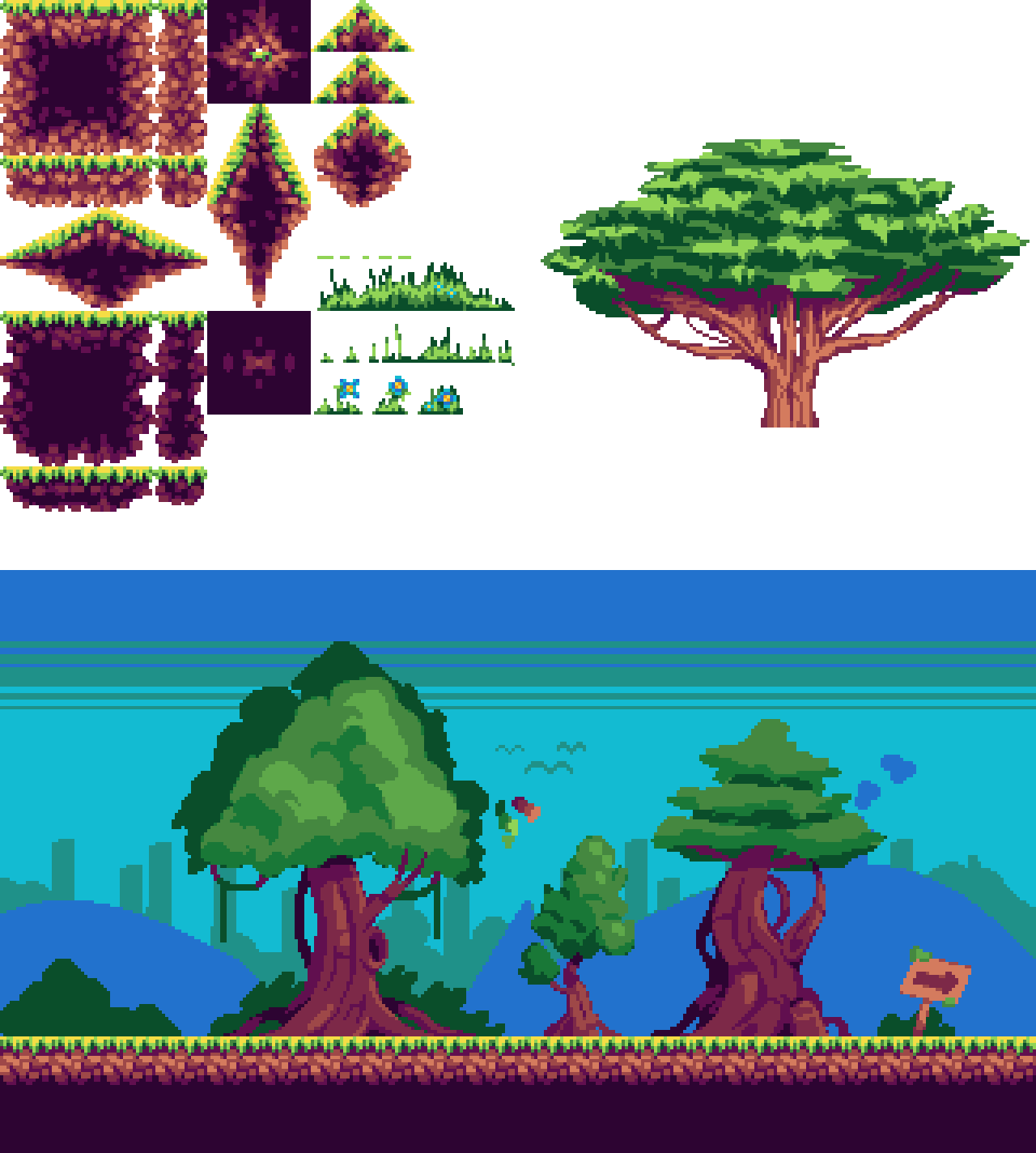 a bunch of things I've made over the years. I try to show everything I've made, including the stuff I'm not so proud of!my software of choice is Aseprite.